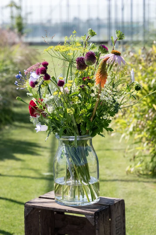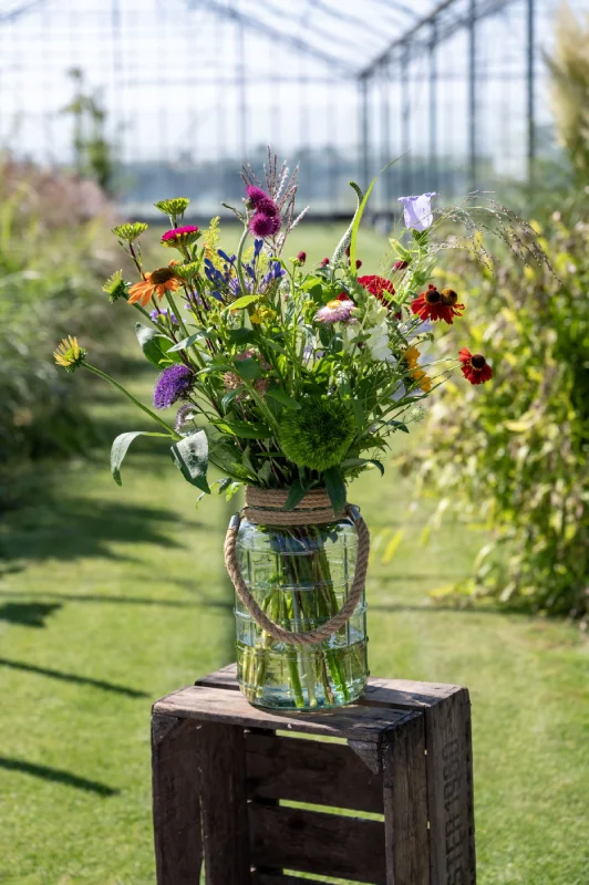 Kies voor een fleurig boeket van unieke, lokale, duurzame geteelde bloemen uit het seizoen. Ieder seizoen wisselend van samenstelling en daardoor altijd verassend! Het plukboeket middel bestaat uit 20 – 25 stelen.